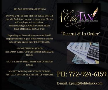 1 Elite Tax is a multi-service office, with experienced tax professionals. We specialized in individuals and businesses taxes